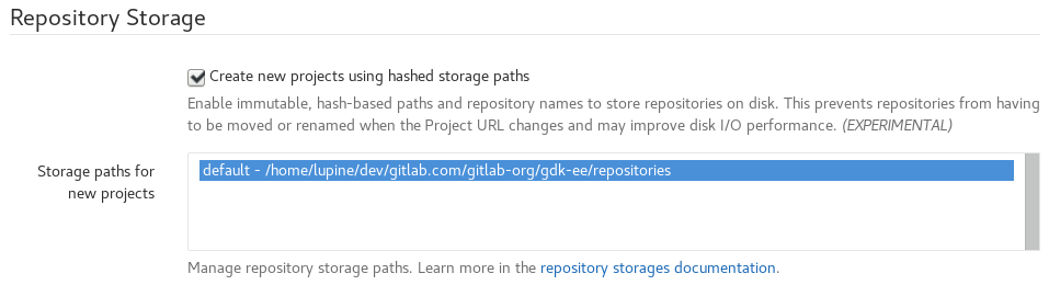 Repository Storagessection, checkCreate new projects using hashed storage paths: